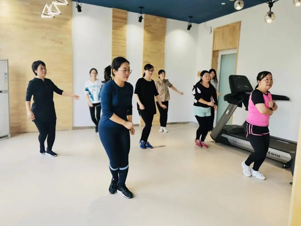 公司老师们在健身操教练的指导下,认真地进行热身练习和基础的健身操动作练习,不仅身心得到了放松,而且也会将这种热情、自信与本职工作完美结合,以更好的精神面貌投入到工作生活中。健身操课程结束后,老师们纷纷表示,一个小时的训练时间过得飞快,大家认为课程体验非常好。虽然初次体验一些动作有些吃力,身体也有些僵硬,但是相信坚持下去一定会取得良好的锻炼效果。