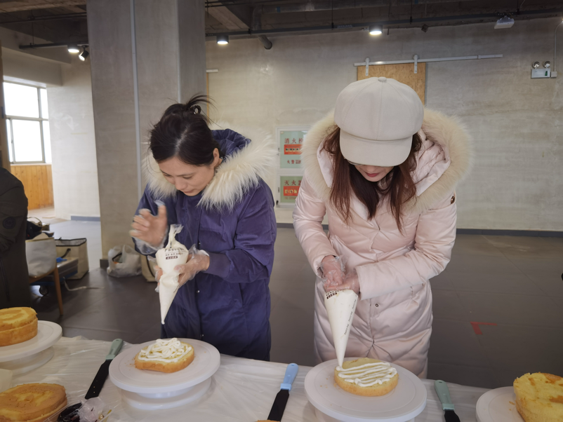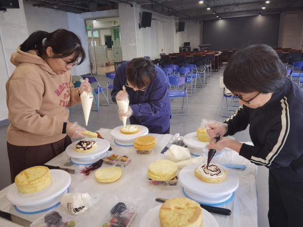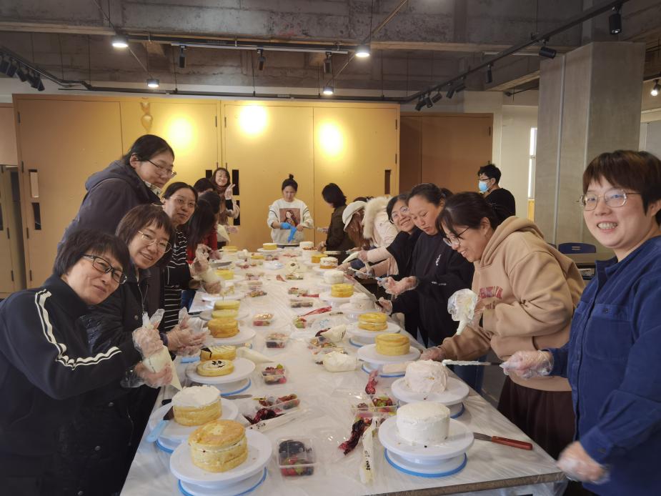 过程中,大家相互协作、互帮互助,不时交流烘焙心得,笑声、欢呼声在区域内此起彼伏。经过一番巧手打造,原本普通的蛋糕胚逐渐变成了造型各异、颜值与美味并存的专属蛋糕:有的简约清新,点缀着鲜果与奶油;有的童趣满满,铺满缤纷糖珠与巧克力;有的文艺雅致,以奶油拉花勾勒出精致图案。每一个蛋糕都饱含着老师们的巧思与心意,咬上一口,甜香在舌尖蔓延,幸福感也随之涌上心头。