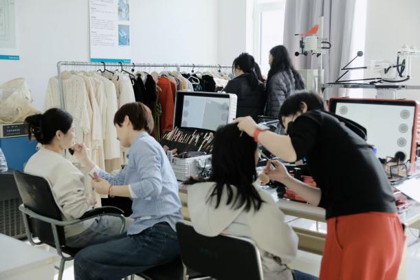 平日里坚守在三尺讲台上的老师们,纷纷卸下平日的忙碌与疲惫,化身“美妆主角”。造型师细致地为大家打底、画眉、修容、定妆,搭配精致的发饰与配饰,每一个步骤都精益求精。随着妆容与发型的完成,老师们的面貌焕然一新:有的温婉端庄,尽显书香气质;有的灵动俏皮,洋溢青春活力;有的干练大气,散发职场魅力。镜前,老师们不时相互欣赏、轻声交流,脸上洋溢着自信甜美的笑容,平日里的疲惫与压力也在这份美好中消散。