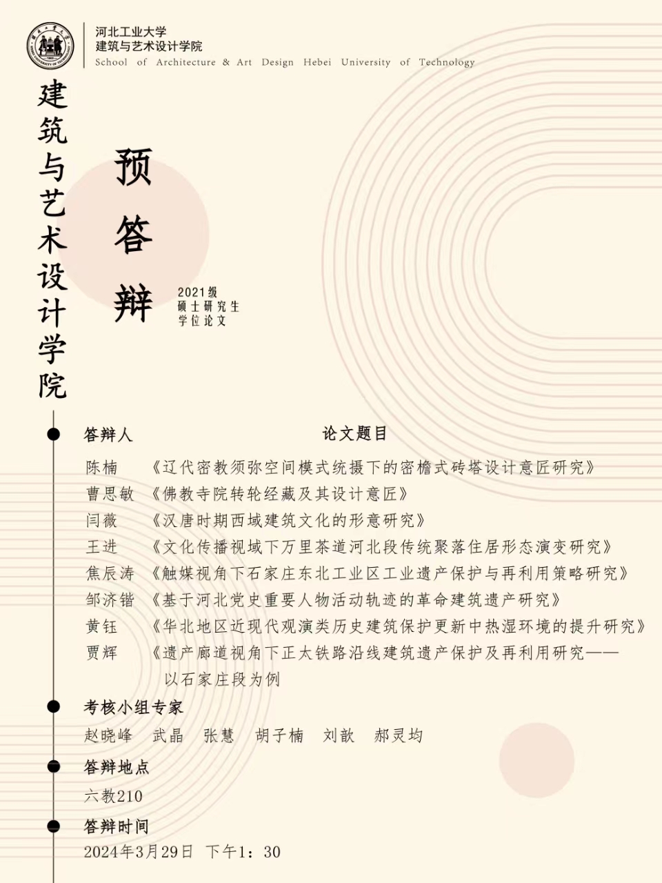 建筑学2021级硕士研究生毕业论文3月份预答辩公告