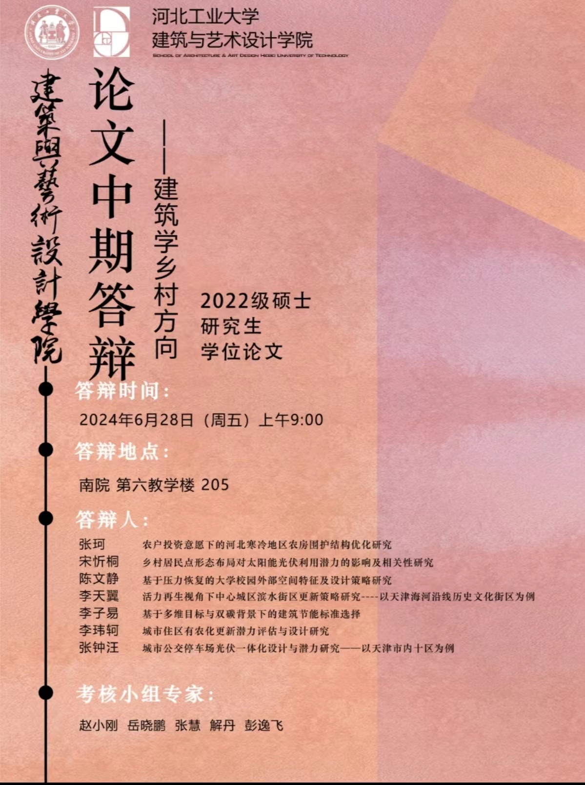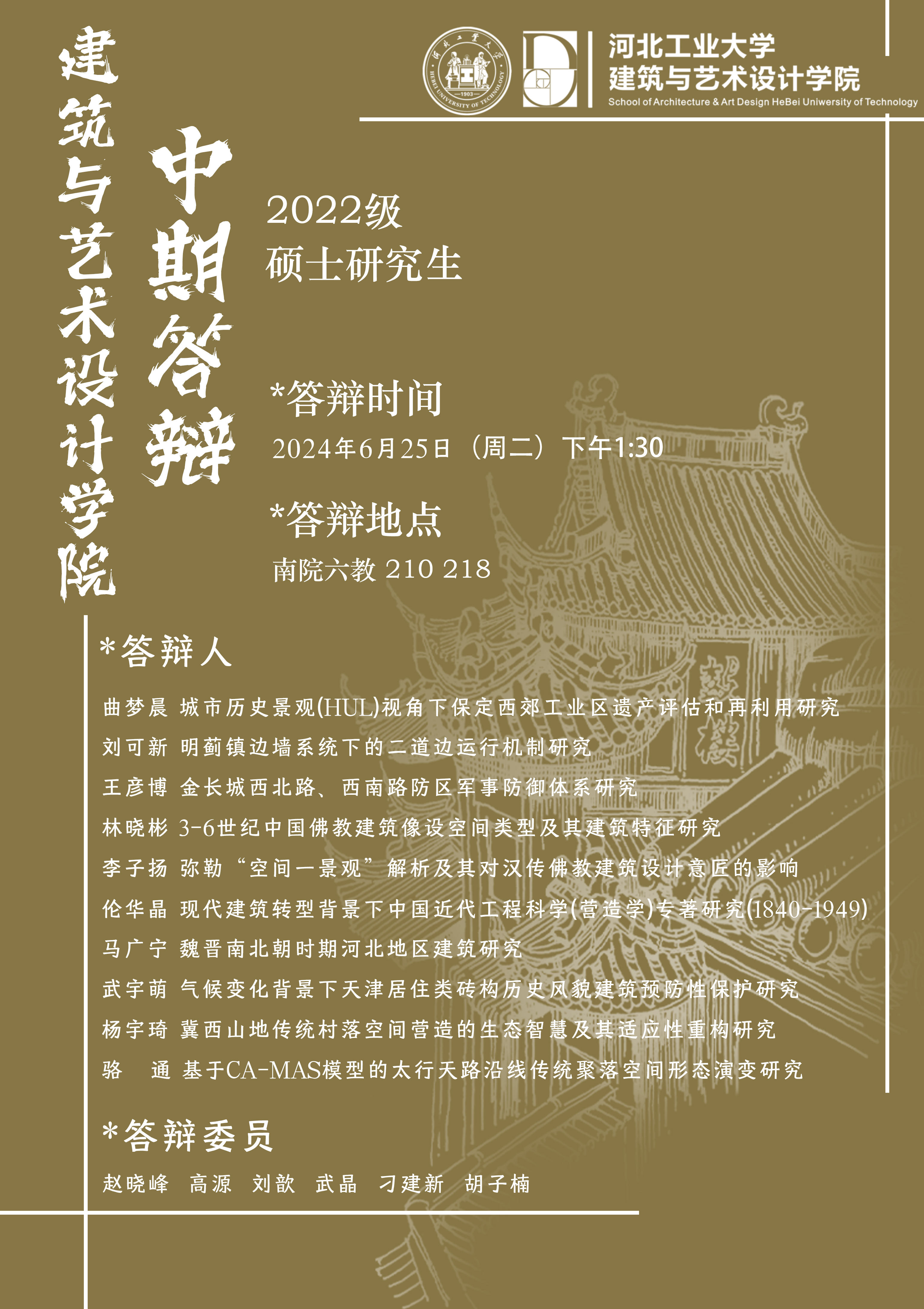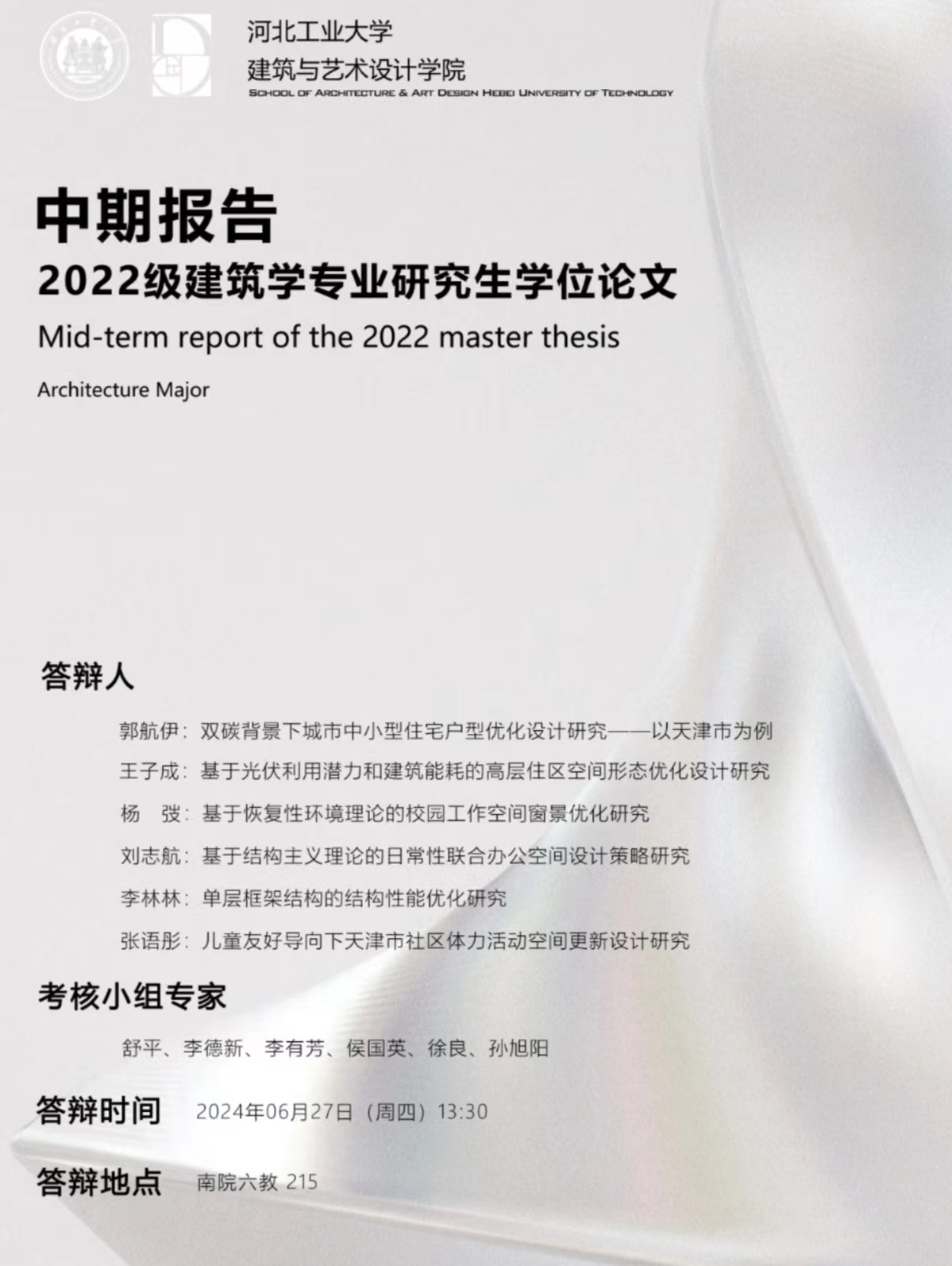 太阳成集团tyc151cc2022级建筑学专业研究生学位论文中期报告