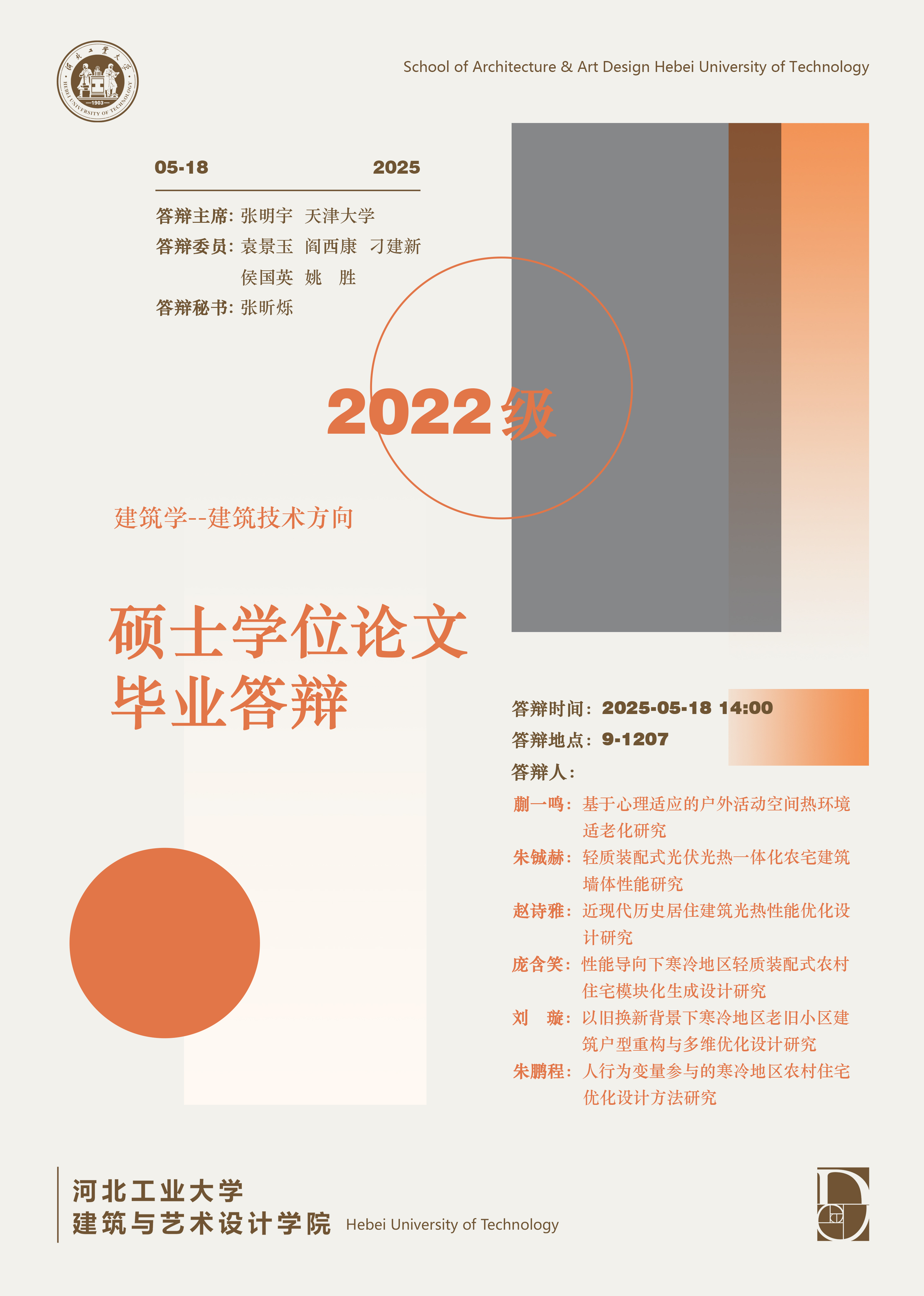 太阳成集团tyc151cc关于2022级建筑学--建筑技术方向、城乡规划学、人居环境可持续创新设计方向、产品方向硕士研究生学位论文毕业答辩的公告