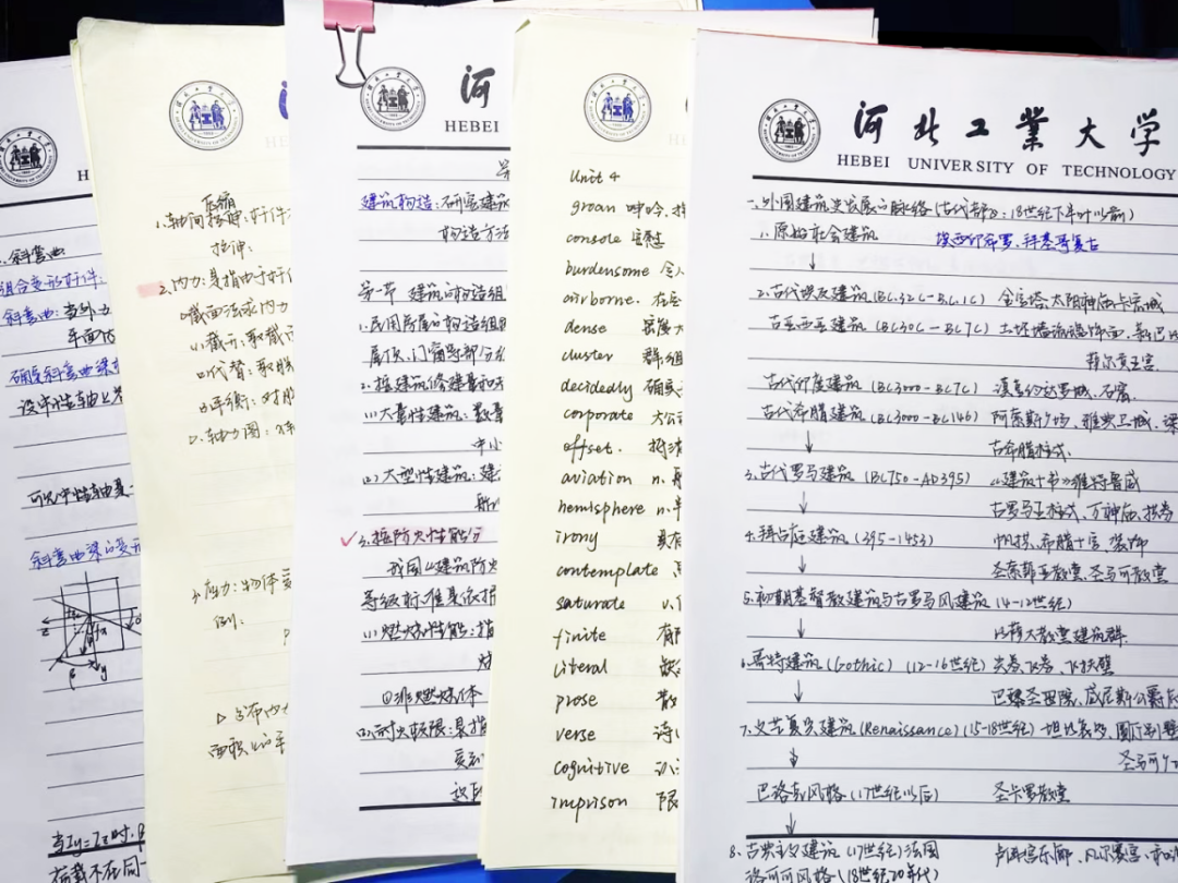 在复习考试科目时,我会提前一到两个月进行准备,把需要理解的知识提前进行复习,如数学、建筑图学、建筑力学等课程;对于需要背诵记忆的知识,如建筑史、建筑构造等课程,我会先利用思维导图等形式梳理整本书的逻辑框架并标注重点内容,而后根据课程内容的多少,到临近考试前1-2周的时候再进行详细背诵。