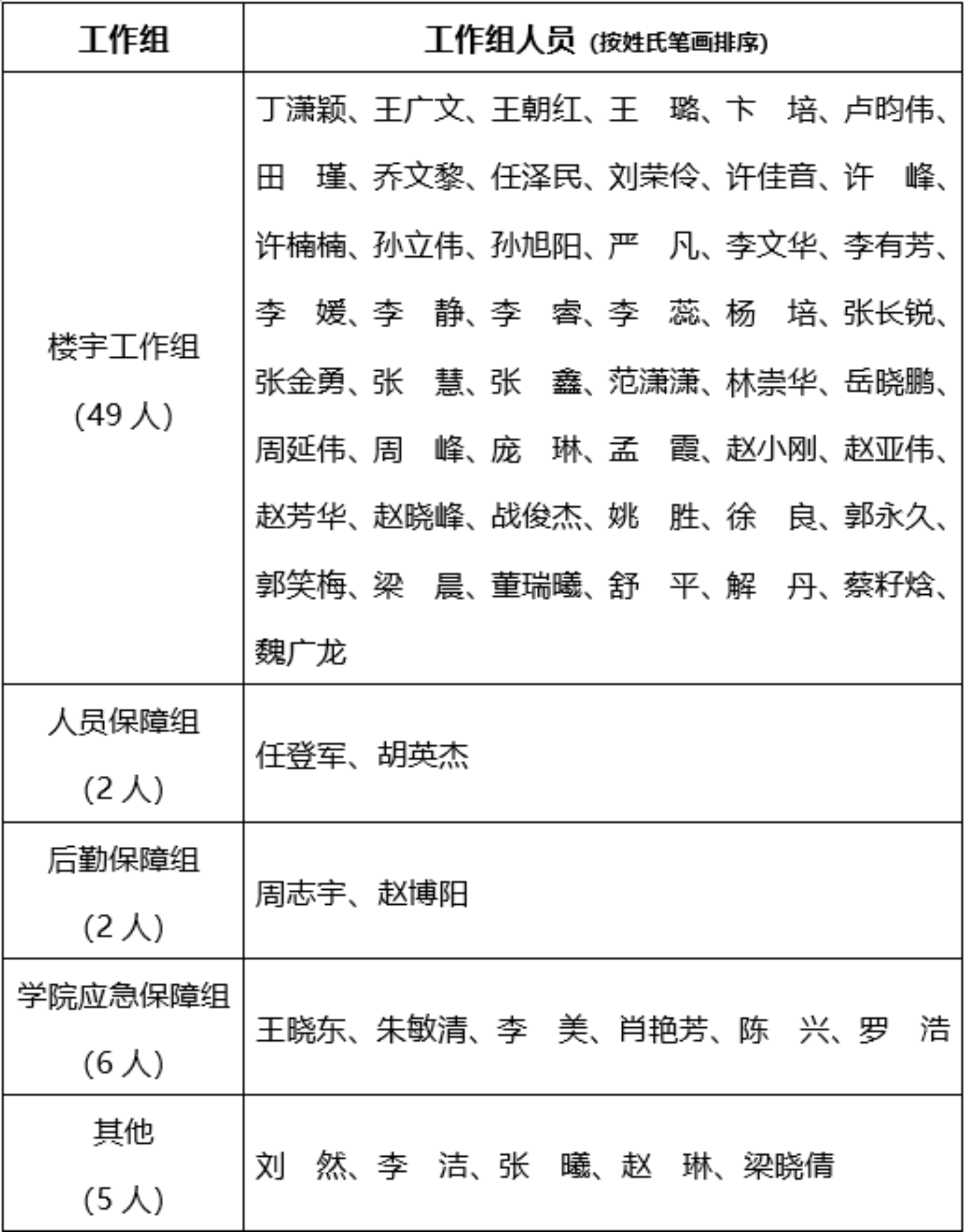 在接到公司通知的1小时内,包括楼宇工作组、人员保障组、后勤保障组在内的共计48名建艺公司教职工组成第一波突击队,迅速进驻员工宿舍开展宿舍秩序维护、外围保障等工作,他们敢担当、有情怀,第一时间坚定的站在了这场严峻斗争的最前沿。
