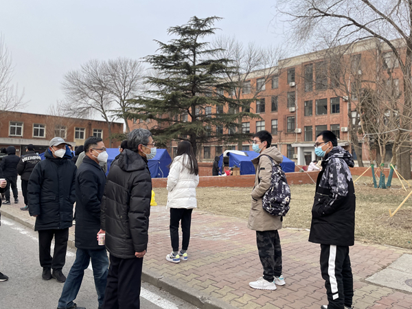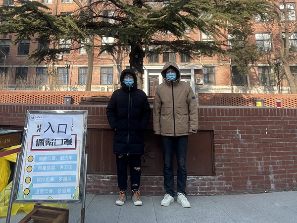 “转眼我们已经做完三轮核酸检测了,大家在寒风中排队等候难免无聊,我们就想为大家增添些不一样的东西。”站在礼堂台阶上为大家唱歌的是建艺学院在校的研究生同学们,他们当中有的是冲锋在前的员工党员,有的是刚提交入党申请书用行动向党组织靠拢的同学。同学们精心选择了四首歌曲《我和我的祖国》《孤勇者》《工学并举薪火长》《We Fly》,饱含着浓浓的爱国情、爱校情、对英雄的敬意与青年人的活力。