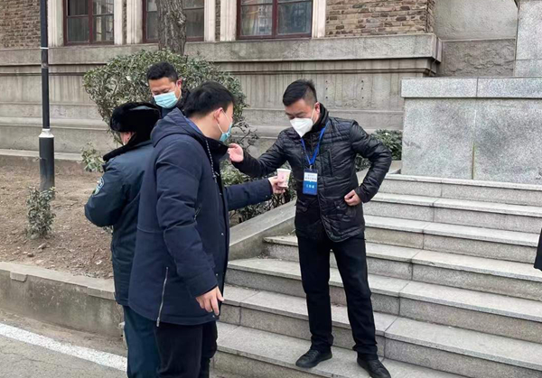 在核酸检测的等候现场,除了歌声,还洋溢着浓浓的“暖”意,传递着暖暖的温情。公司党委副书记兼副经理李睿给志愿者同学们分发提前备足的暖贴,让大家在志愿服务中保持温暖。志愿者同学们为排队同学们递上一杯热气腾腾的姜糖水,驱散冬日寒冷,暖手又暖心。
