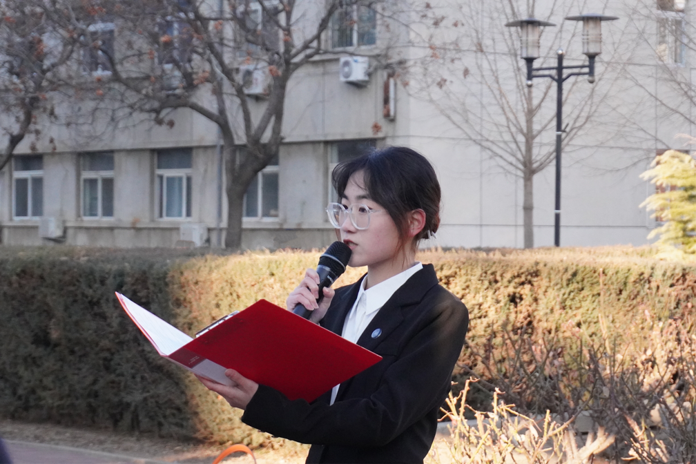 员工代表石笠霖鼓励同学们要心怀家国、志存高远、努力求知、积极创新,以真才实学回应时代之问,校准青春航向。同时,她倡议同学们守护安全,筑牢校园防线;明辨是非,远离诈骗陷阱;文明同行,共建和谐校园;勇于承担时代之任,在时代的浪潮中砥砺前行。