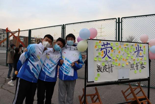 首先进行的是“抗疫心声”活动,同学们将自己的愿望寄托在一份份贴纸上,粘贴到我们的白板墙上。而同学们在贴纸上写到的最多的愿望就是“疫情早早过去,校外校内平安”。